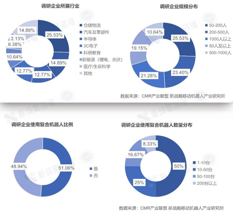 响应柔性制制的焦点需求:现代制制业面对小批量、多品种的出产挑和,要产线能快速调整。复合机械人的矫捷性和可沉构性恰是为此而生。它们可以或许替代保守固定工位,实现物料正在工位间的自支流转和精准功课,极大提拔了产线的柔性。“具身智能”成为新赛道:行业正将具身智能视为下一代机械人的演进标的目的。这意味着机械人的智能并非孤立存正在,而是通过取物理的交互不竭进修和进化,最终能像人一样正在复杂非布局化中完成多使命协同功课。总体来看,复合机械人本体的出产制制正朝着更智能、更矫捷、更切近现实工业场景的标的目的快速成长将来的合作将不只仅是硬件机能的比拼,更是对行业工艺学问的深度理解、软硬件一体化的整合能力以及建立生态的分析较劲。具身智能复合机械人的下逛使用行业正正在越来越丰硕,为了更好地领会当前各行业对该类机械人的使用现状及等候,新计谋挪动机械人财产研究所出格针对下逛终端用户做了一次问卷查询拜访,本次共收集47份无效问卷。以下为问卷查询拜访成果: